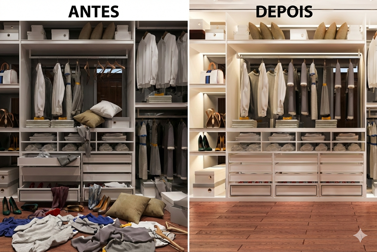 A organização vai muito além da estética. Ela impacta diretamente a rotina, a produtividade e o bem-estar. Nos atendimentos residenciais, estruturamos cada ambiente com lógica, funcionalidade e praticidade e facilitando o dia a dia da família.